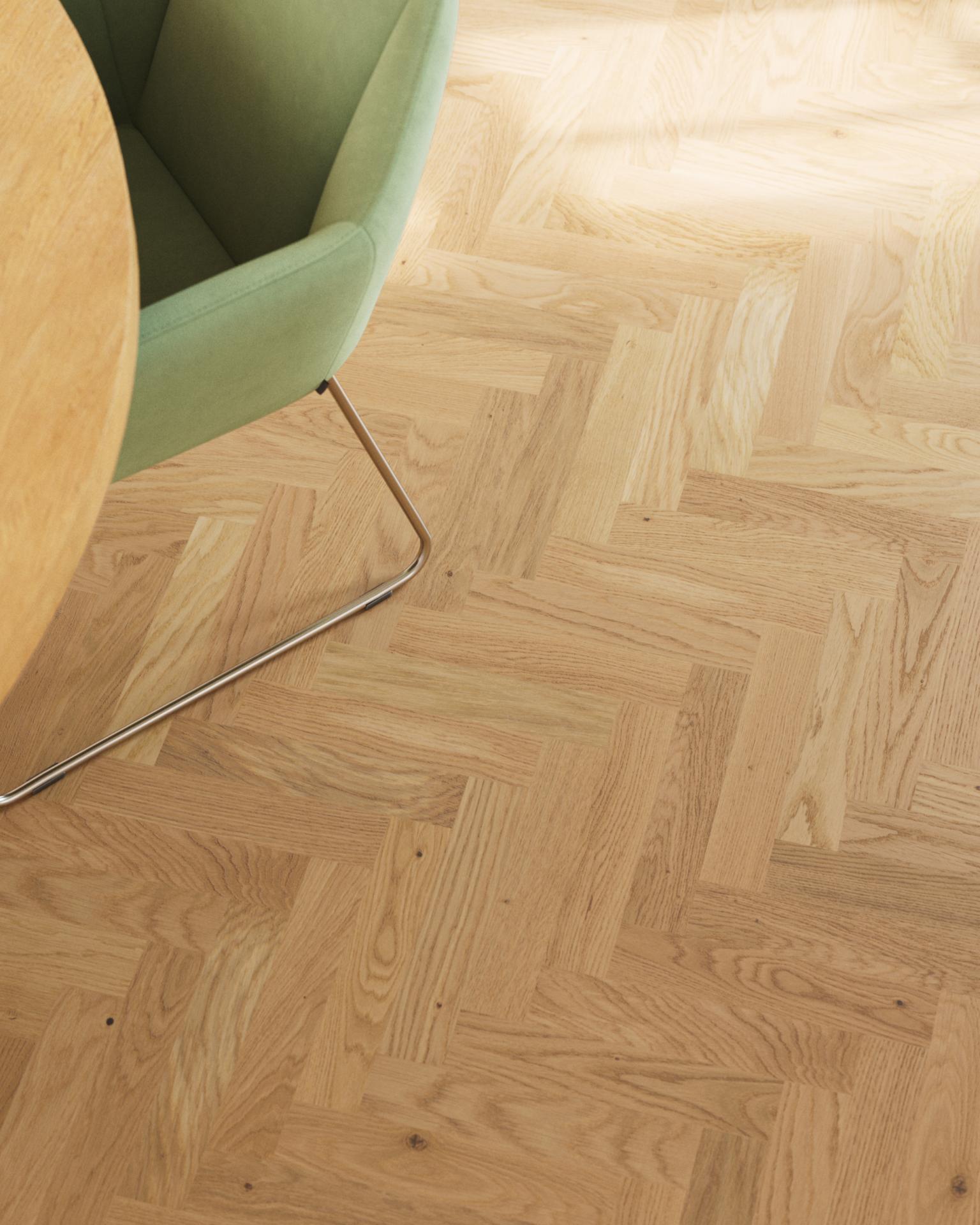 Verkürzen Sie die Projektzeit mit vormontierten Startdreiecken. Mit diesen sofort einsatzbereiten Dreiecken für unser Parkett in Fischgrätoptik entfällt das Selbstmontieren, was einen schnelleren und reibungsloseren Installationsprozess ermöglicht.